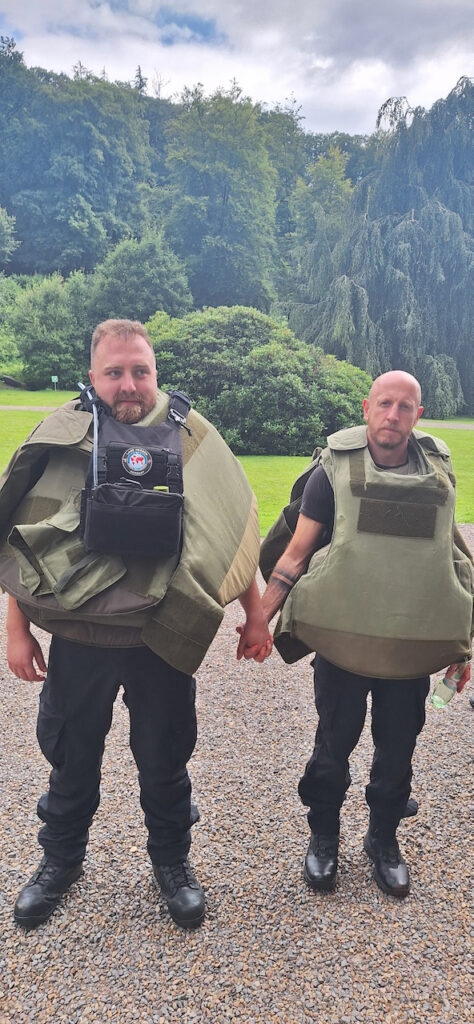 Day three was washed out somewhat from constant rain so we blitzed through the rest of the course’s PowerPoints which was tough going but informative. We did have the chance to look in to Op Plato scenarios where we took it in turn being trapped in a room and having to plan rushing the attacker to subdue them. We did this about a dozen times and each time was a blast. Learning came out of each permutation and the time flew by and was up there with one of the course highlights. Launching rubber bricks and foam bottles at each other was great fun.