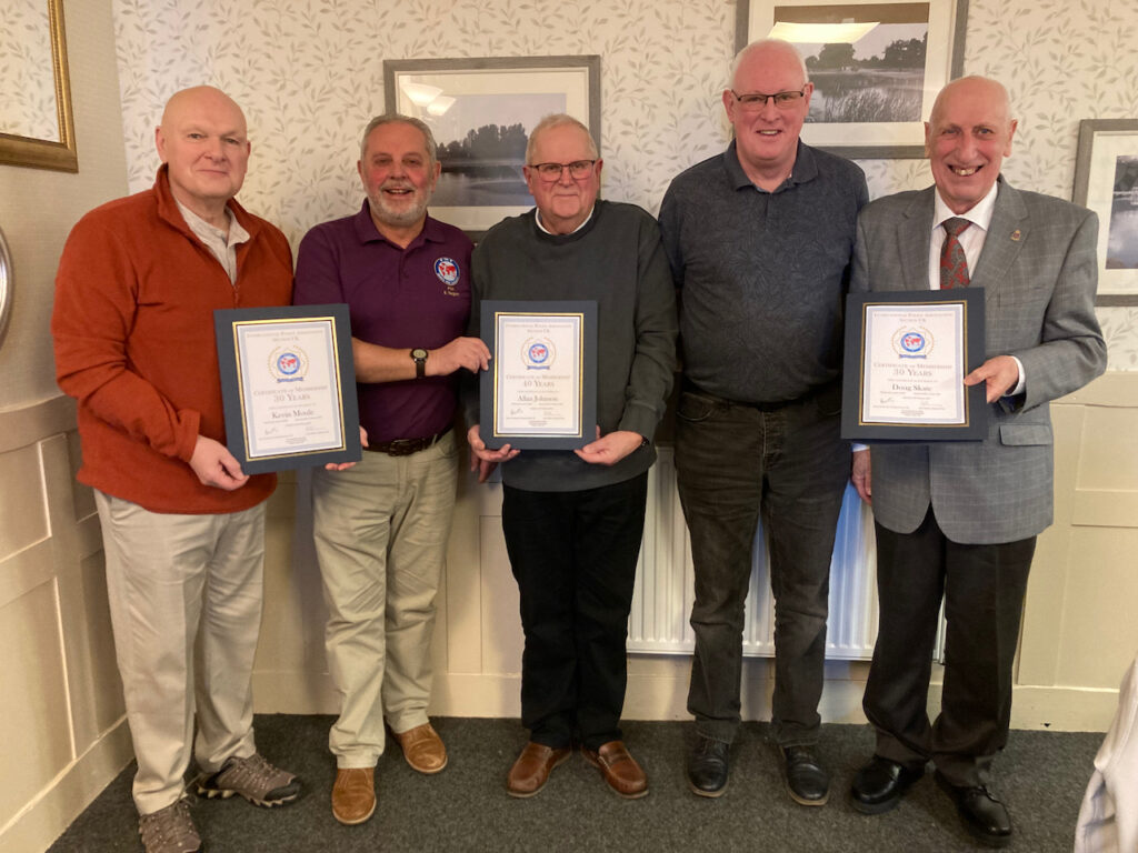 Sunday 18th January saw four members of Norfolk & Suffolk Branch awarded membership anniversary certificates at a lunch at the Olde Windmill Inn at Great Cressingham near Swaffham.